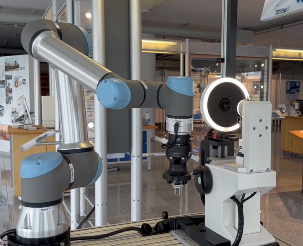 Eine Cobot-gestützte Lösung zur automatisierten Bestückung von Messuhrenprüfplätzen hat die Feinmess Suhl GmbH, ein Unternehmen der Steinmeyer-Gruppe, entwickelt. Das System erkennt bis zu zehn verschiedene Messuhren und positioniert sie vollautomatisch im Prüfplatz. Der Roboter übernimmt dabei sämtliche Einstellungen, die bisher manuell erfolgten – etwa für Blende, Kamerahöhe und Messabstand.