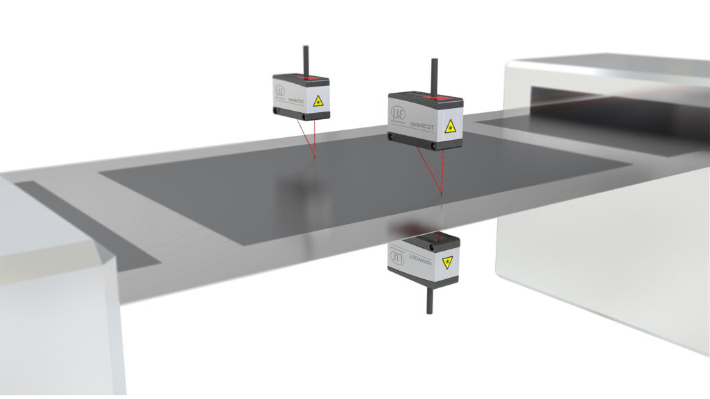 Für präzise zweiseitige Messungen kommen zwei Laser-Triangulationssensoren der Reihe »optoNCDT 1900 LL« zum Einsatz, die gegenüberliegend montiert den Abstand zur Folie erfassen. Ihre Synchronisierung und präzise Ausrichtung ermöglichen eine hohe Messrate bei maximaler Genauigkeit.
