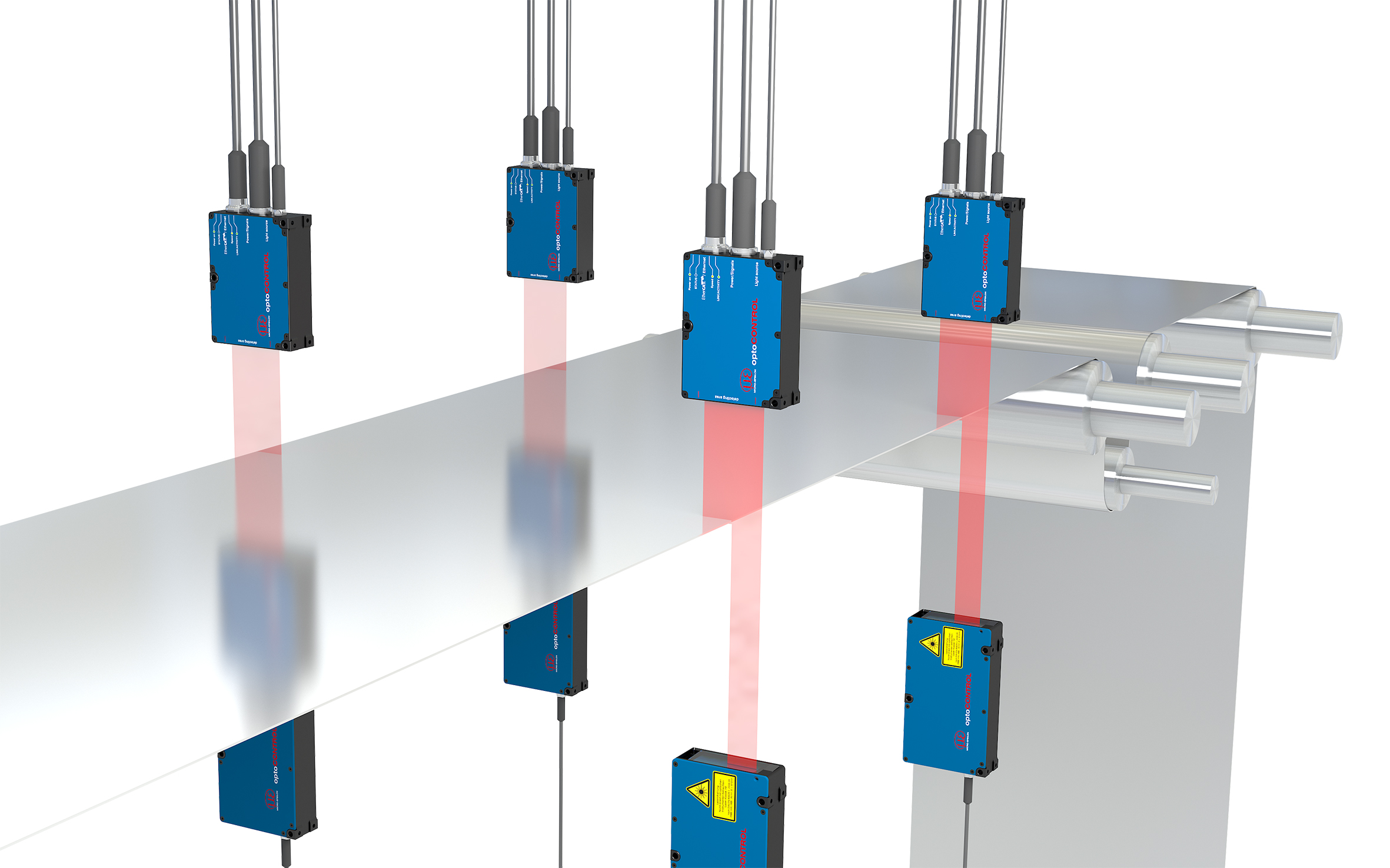 Zur Bandkantenüberwachung werden optische Mikrometer eingesetzt, die präzise Bahnführung und Breite in dynamischen Prozessen überwachen.
