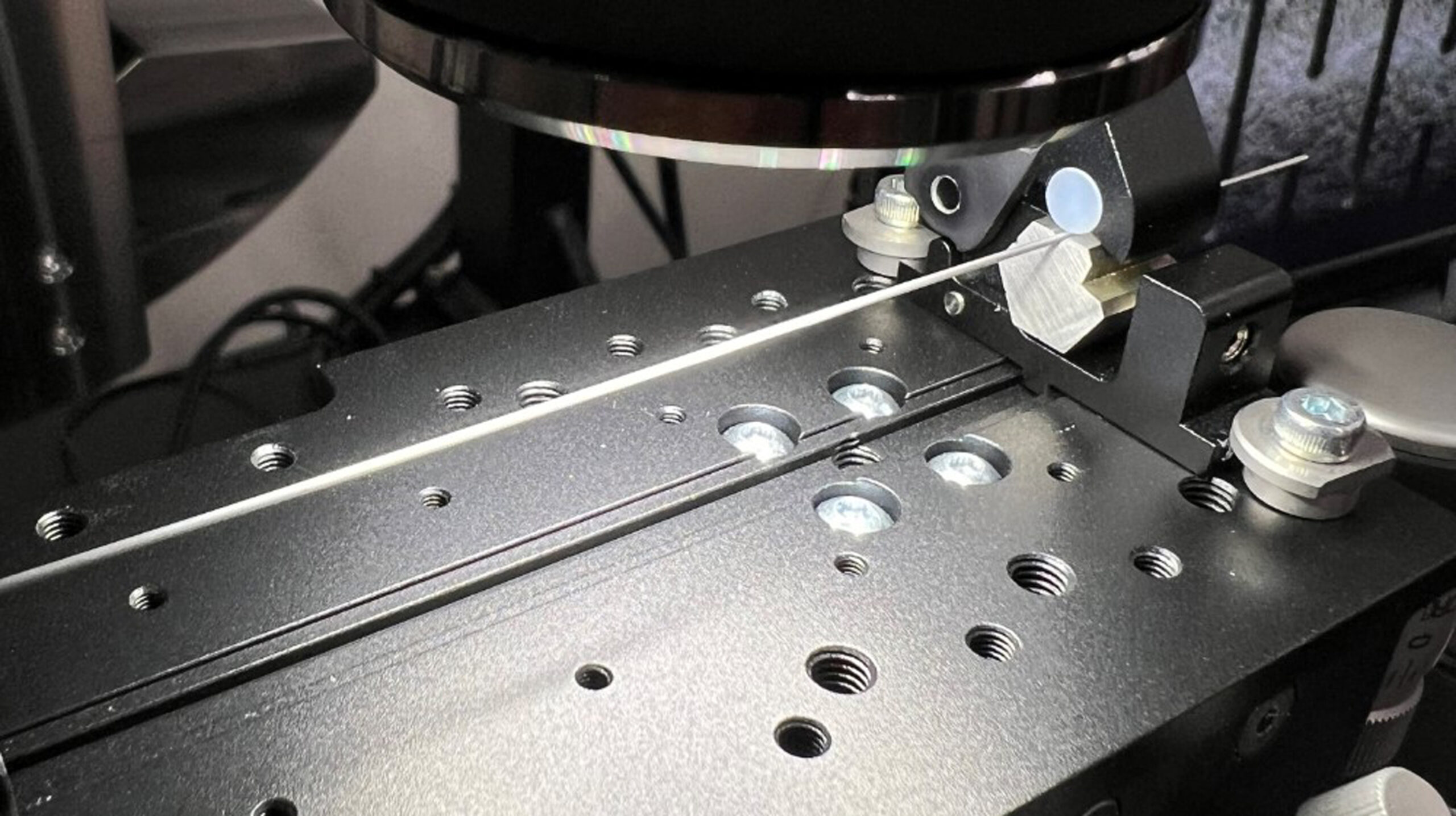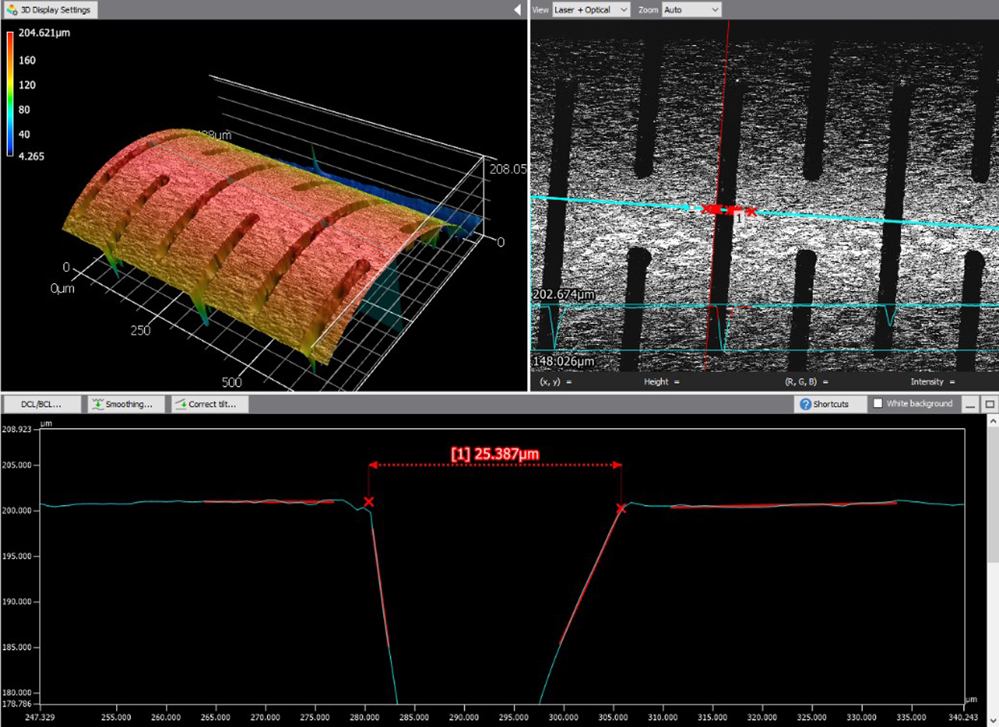 Ein 3D-Lasermikroskop bei der Vermessung eines Schnitts in einem lasergeschnittenen Hypotube: Der erzeugte Datensatz bildet eine vollständige 3D-Oberfläche ab.