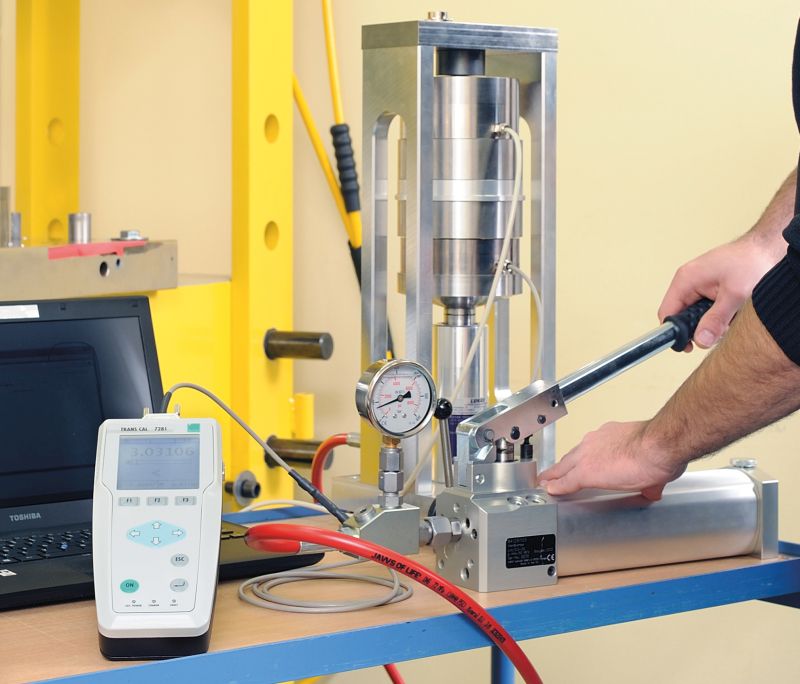 Kalibriergerät im Einsatz für Druckmessertest (Bild: burster)